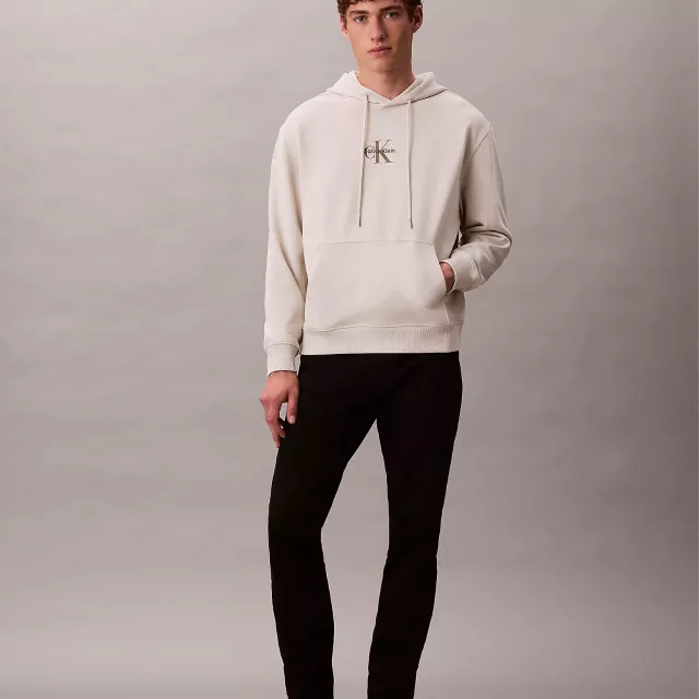 Calvin Klein Jeans Men’s Beige Cotton Hoodie Sweatshirt – Fall/Winter Essential
