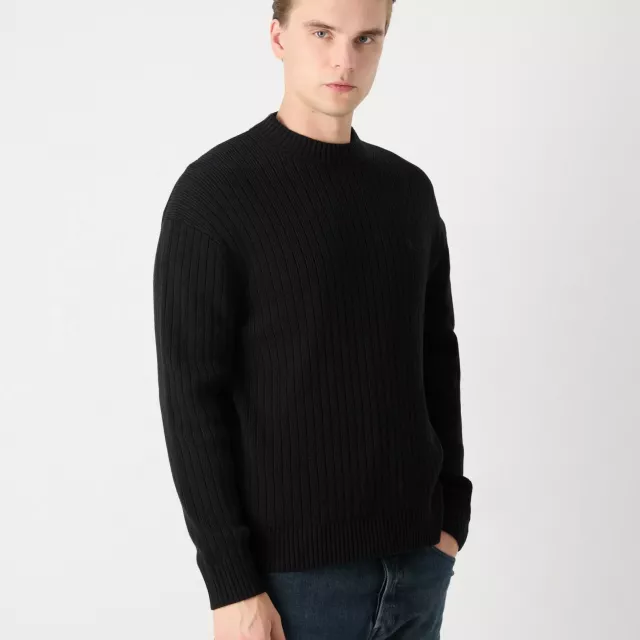 Don’t wait to experience timeless comfort and style. Add the Calvin Klein Jeans Black Knit Sweater to your wardrobe today and redefine your fall/winter fashion with ease.