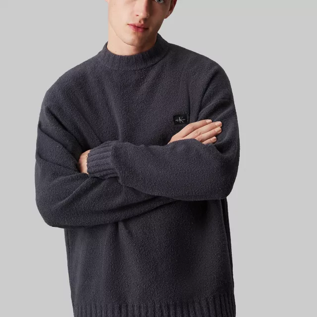 Step into the season with confidence. Add the Calvin Klein Jeans Grey Knit Sweater to your collection and experience the blend of style, quality, and comfort only Calvin Klein can deliver.