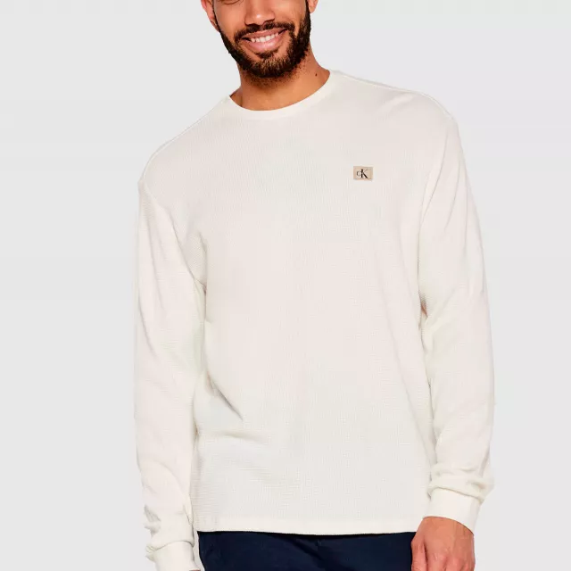 Featuring a classic round neckline and long sleeves, it delivers a sleek silhouette that’s perfect for layering or wearing solo. The crisp white color pairs effortlessly with jeans, chinos, or trousers, making it ideal for both casual outings and smart-casual occasions. Designed with Calvin Klein’s signature minimalism, this piece adds a touch of understated sophistication to your everyday style.