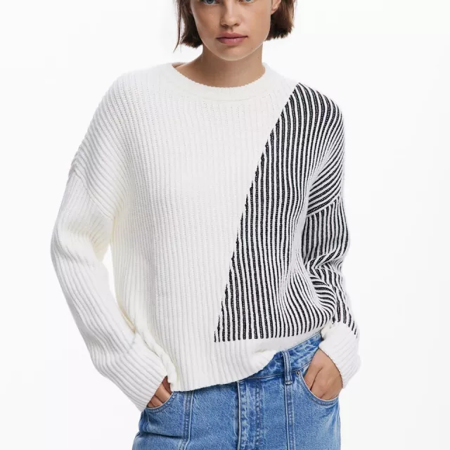 Unlike ordinary sweaters, this Desigual piece brings personality into every stitch. The round neckline flatters different body types, while the lively colored pattern sets it apart from the basics in your closet. It’s a statement knit that can be dressed up or down—perfect for those who love standing out in subtle yet stylish ways.