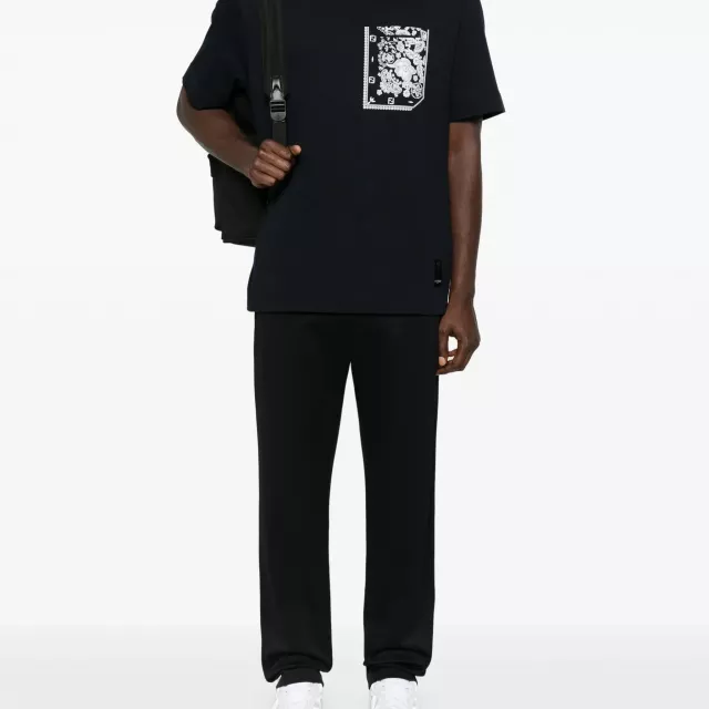Crafted in a deep midnight blue, this T-shirt features a unique bandana coral motif on the chest pocket and the back of the collar. The white bandana print contrasts beautifully with the rich blue, while the matching FF logo details add an extra layer of luxury. The shirt’s regular fit ensures all-day comfort, while the short sleeves and crew neck make it perfect for warmer weather or layering under your favorite jacket.