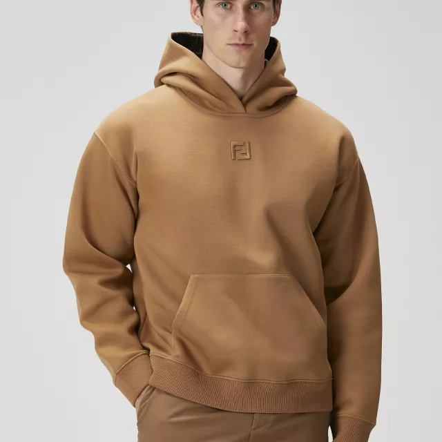 Crafted from a high-quality cotton blend, this hoodie offers a soft and cozy fit that you’ll never want to take off. Its adjustable hood with a drawstring provides a personalized fit, while the lined FF pattern in shades of brown gives a touch of designer elegance that’s instantly recognizable. The front kangaroo pocket adds a practical element, allowing you to carry small essentials or simply keep your hands warm on chilly days. The long sleeves feature ribbed cuffs to keep the sleeves in place and offer a snug fit for added comfort.