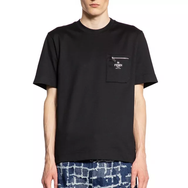 This Fendi Black Cotton Oversized T-Shirt is more than just a basic tee—it’s an investment in luxury and comfort. The combination of 100% cotton fabric and the oversized fit ensures that you stay cool and relaxed while exuding an effortlessly chic vibe. The minimalist design is elevated with Fendi’s signature branding, making this piece stand out in any setting without being overly flashy. The small breast pocket and Fendi O’Lock zipper add functional flair, giving it a unique touch that true fashion enthusiasts will appreciate.