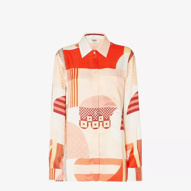 Fendi Pink Silk Shirt with Patchwork Print
