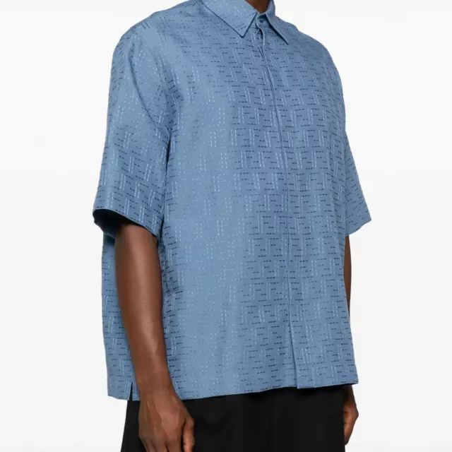 Step up your wardrobe game with the Fendi Relaxed Boxy Shirt, a perfect blend of style, comfort, and sophistication. Crafted for those who appreciate both effortless elegance and modern design, this shirt brings a unique twist to your everyday look. The shirt features a mid-blue tonal color with a geometric textured weave, offering a refined touch to your casual collection. Whether you’re going for a laid-back vibe or a smart-casual look, this shirt is the ultimate versatile piece to have in your closet.