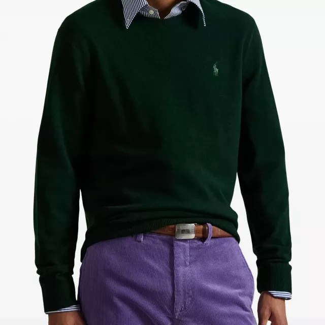 Designed with a classic round neck and long sleeves, it adds a refined touch to any casual or semi-casual ensemble. The rich green color brings a pop of personality to your fall and winter wardrobe, while remaining easy to pair with other layers or your favorite jeans. Polo Ralph Lauren’s signature craftsmanship shines through in every stitch, giving you a product that is both durable and stylish.