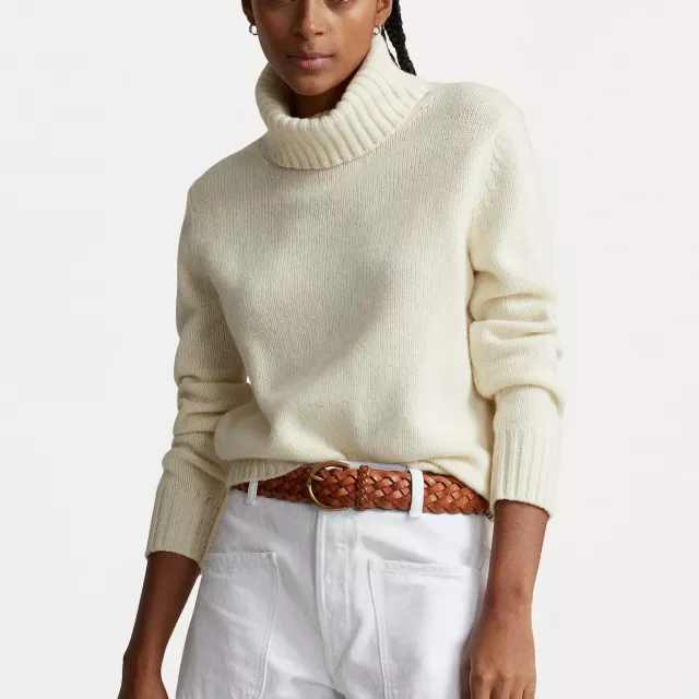 The Polo Ralph Lauren Women’s Beige Wool Turtleneck Knitwear is the ideal piece for Fall and Winter. Whether you’re at a cozy weekend brunch, running errands, or out for a winter walk, this versatile sweater keeps you warm without compromising on style. Dress it up with a chic scarf and boots for a sophisticated look, or keep it casual with your favorite jeans. The options are endless with this timeless piece that will complement your personal style while keeping you cozy all season long.
