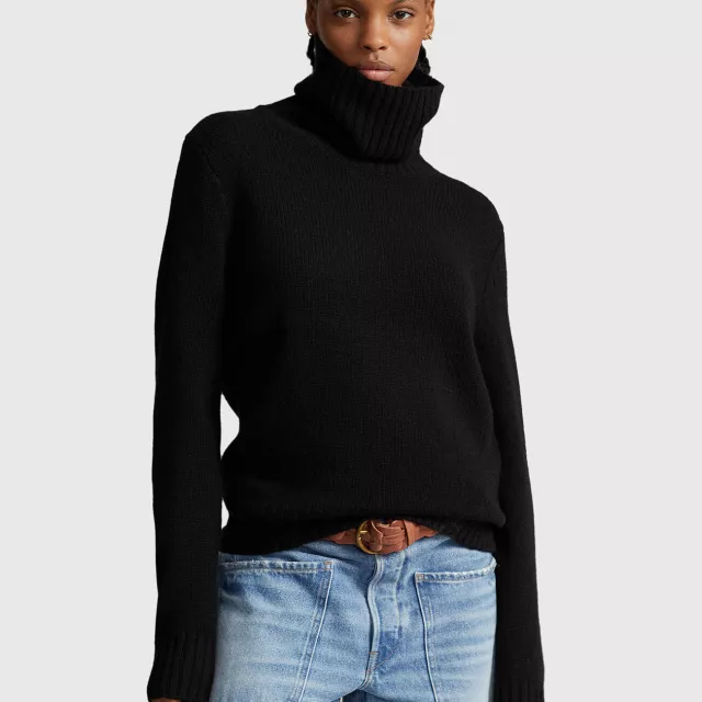 Make this classic black wool turtleneck sweater a key player in your seasonal wardrobe and experience the unmatched quality and elegance of Polo Ralph Lauren.